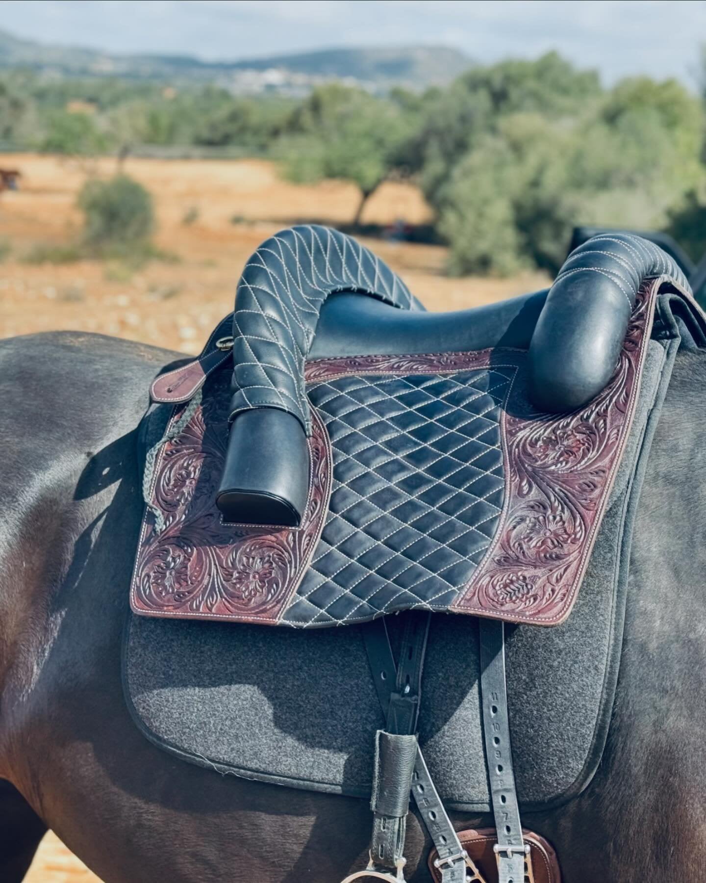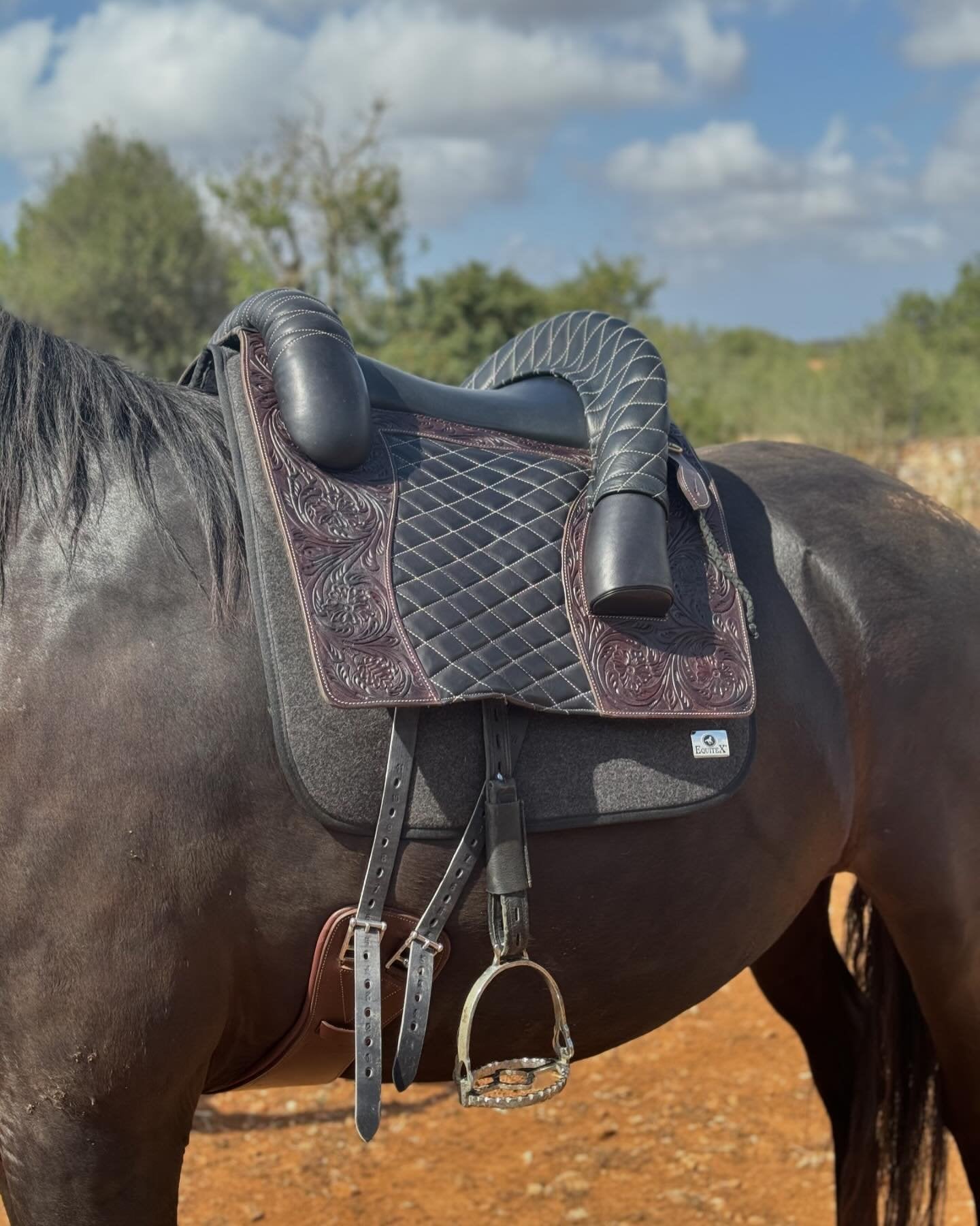 It is equipped with our traditional HIDALGO leather tree and the usual Velcro saddle pads, which are available in a variety of thicknesses and lengths, depending on the needs of the horse’s back.
