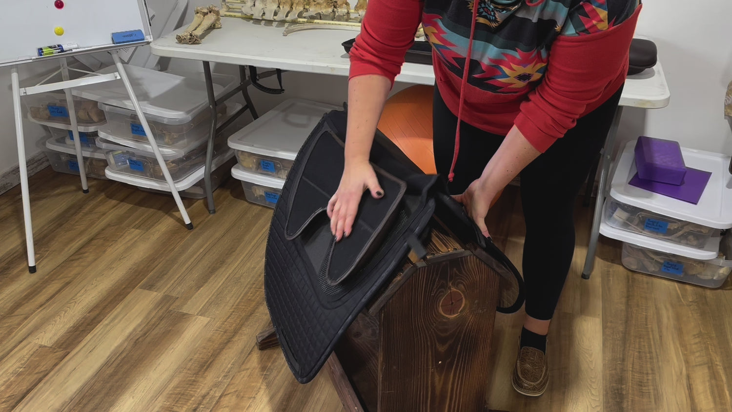 This saddle pad is equipped with AIRCO, air condition along the horse's spine.