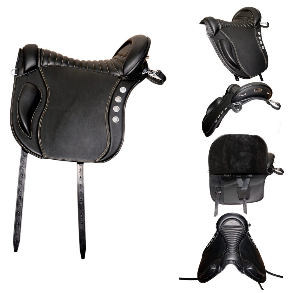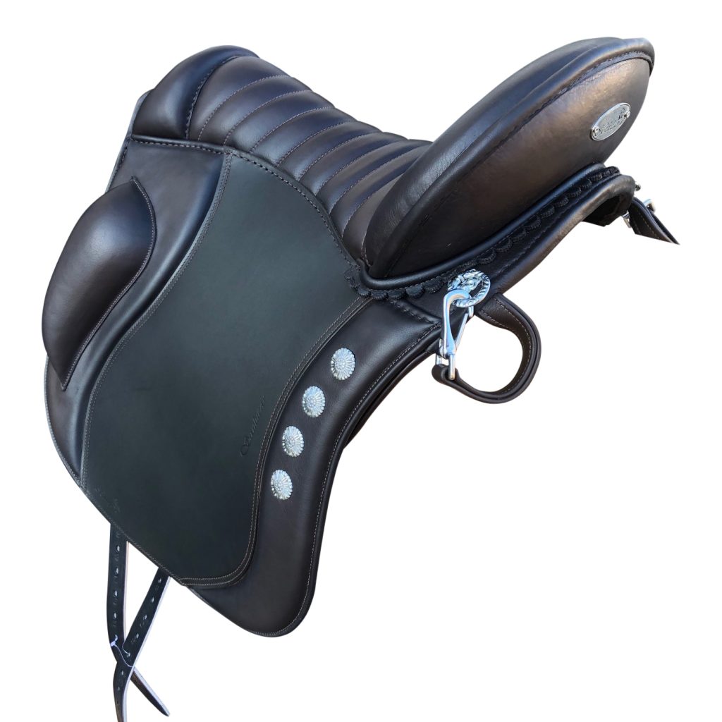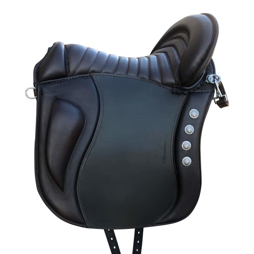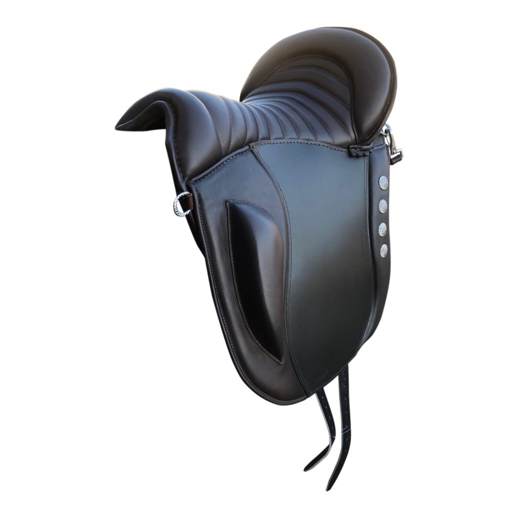 The saddle is available with fixed kneeblocks and detachable kneeblocks.