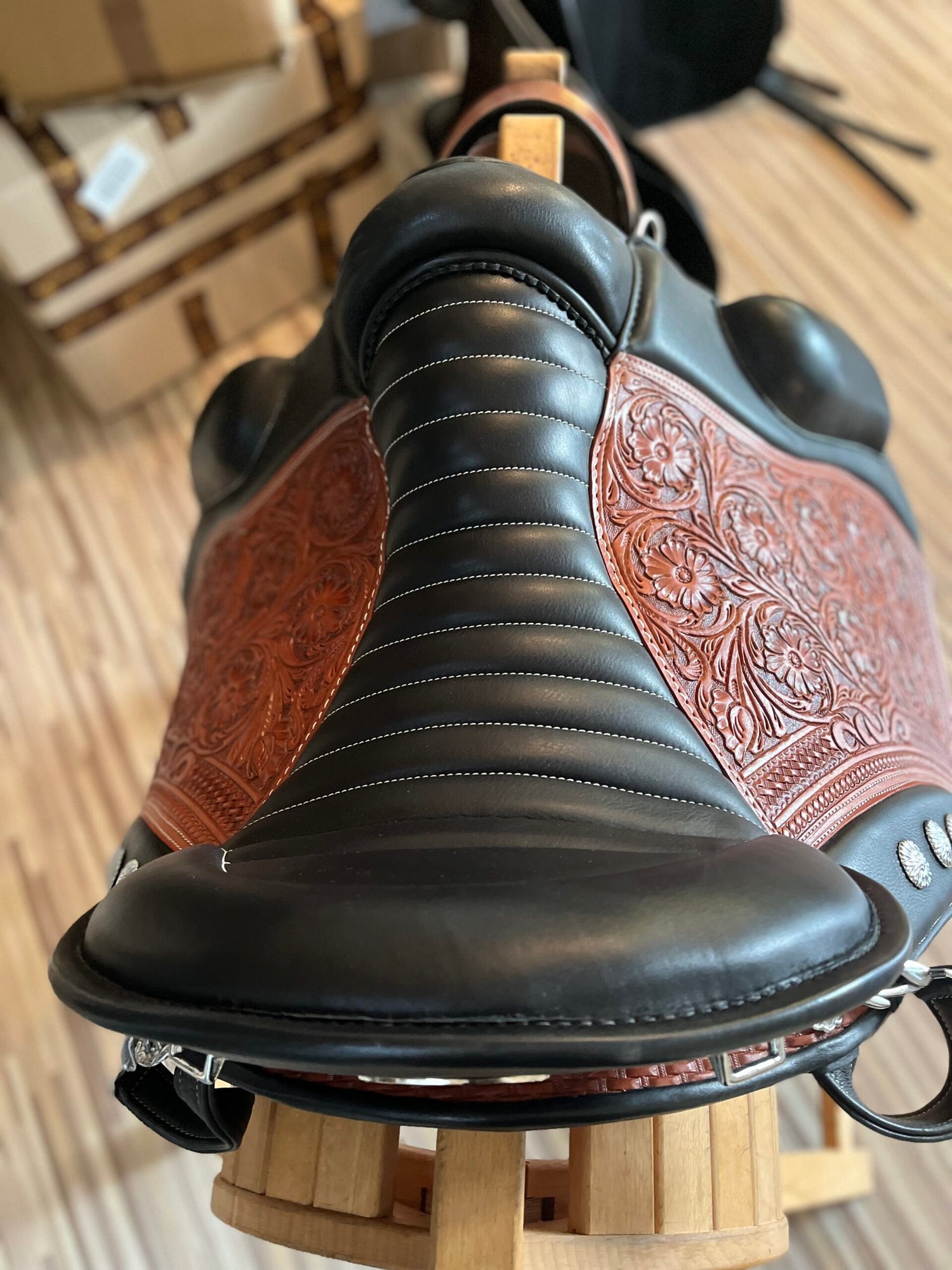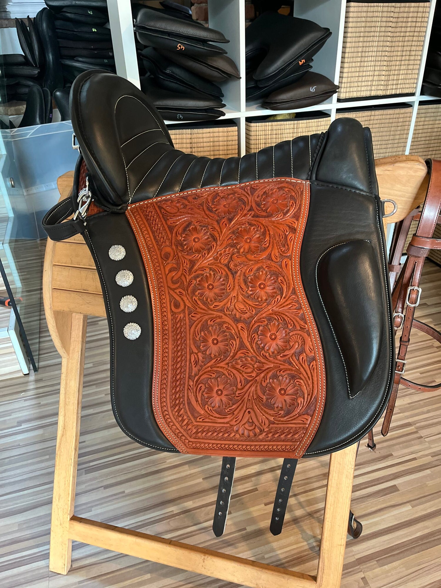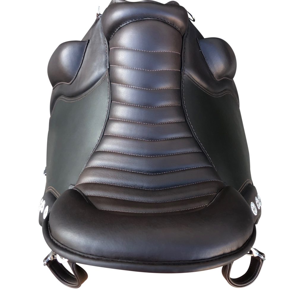 The saddle is available with fixed kneeblocks and detachable kneeblocks.