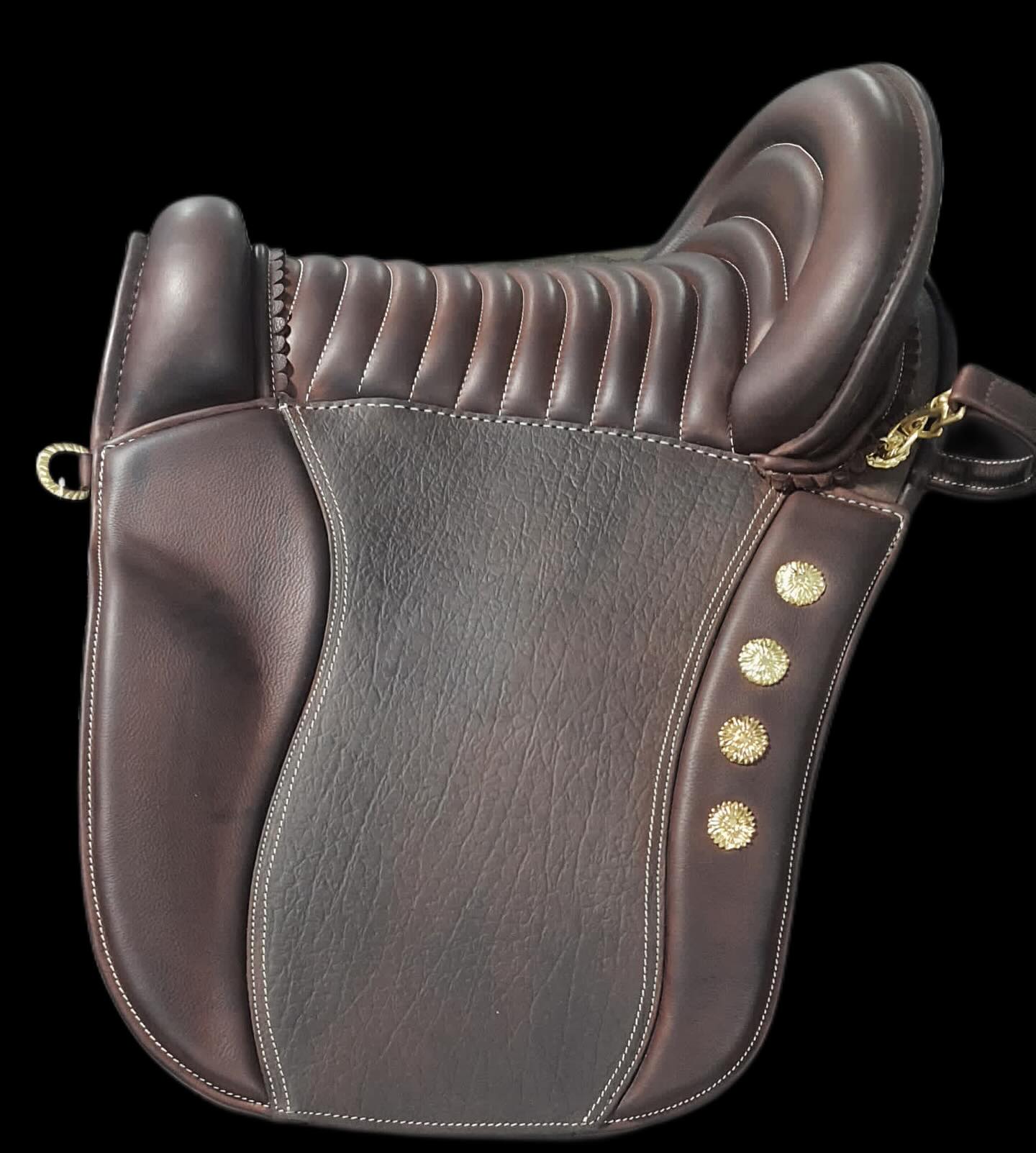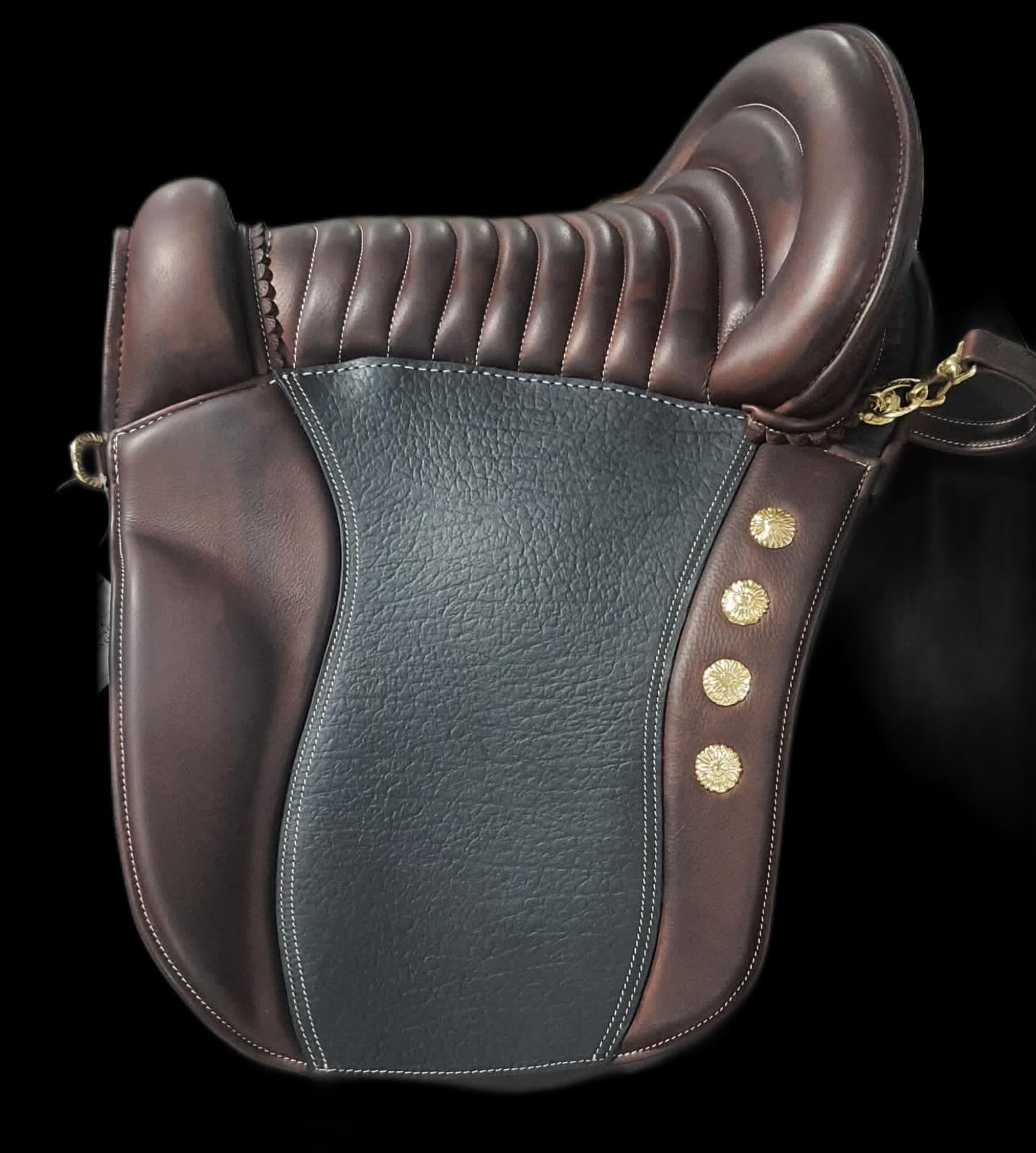 The saddle is available with adjustable under the flap and detachable kneeblocks.