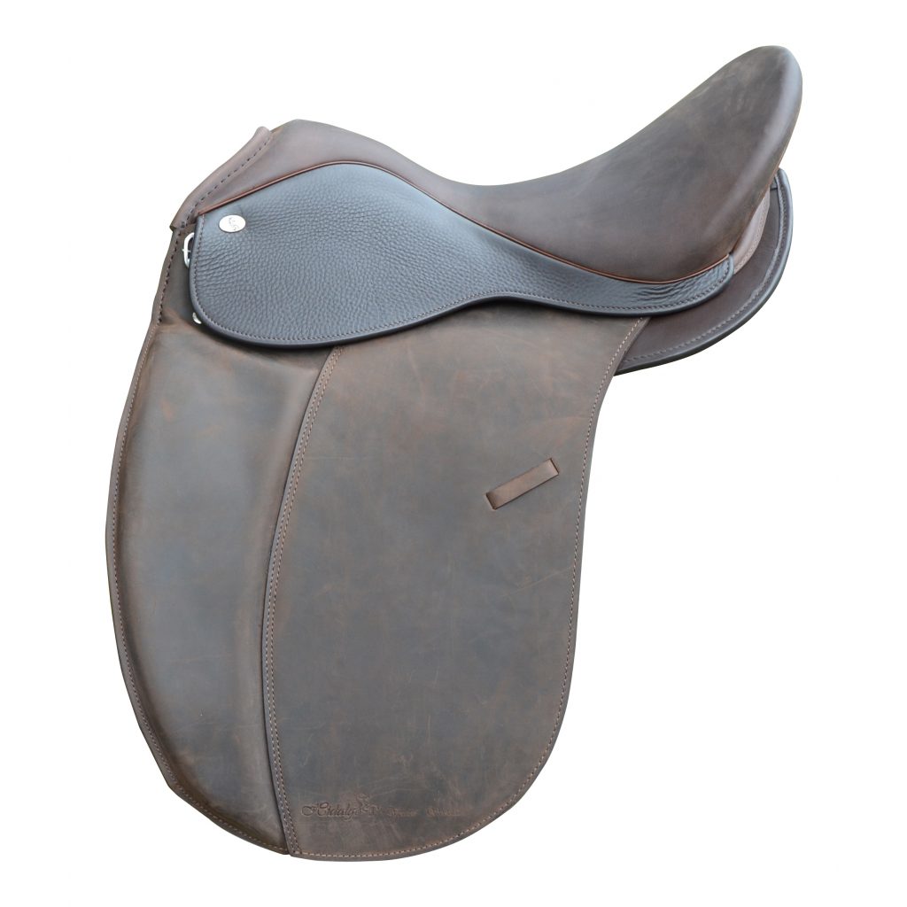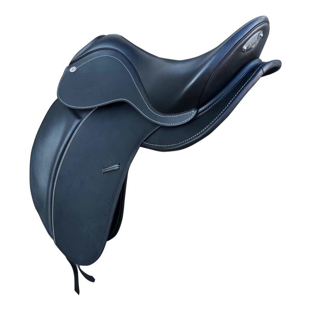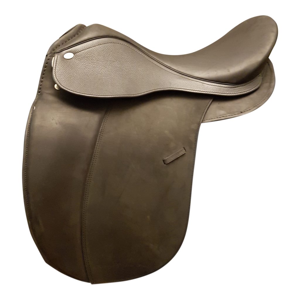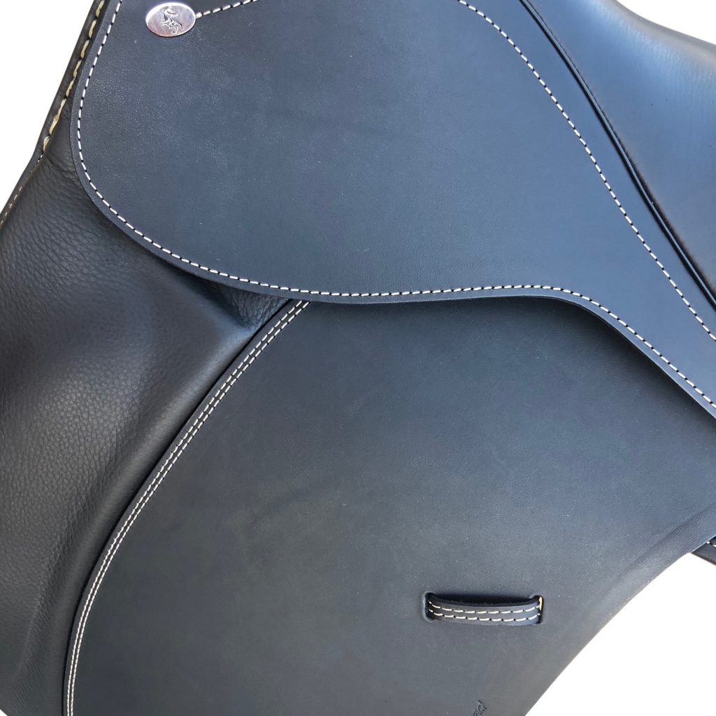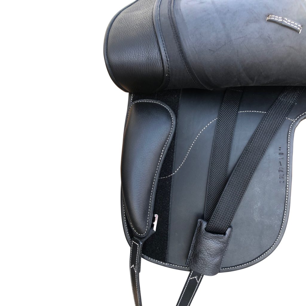 A very classy, comfortable saddle with preformed kneepatches and detachable panels and knee blocks with 11" seat at widest part.