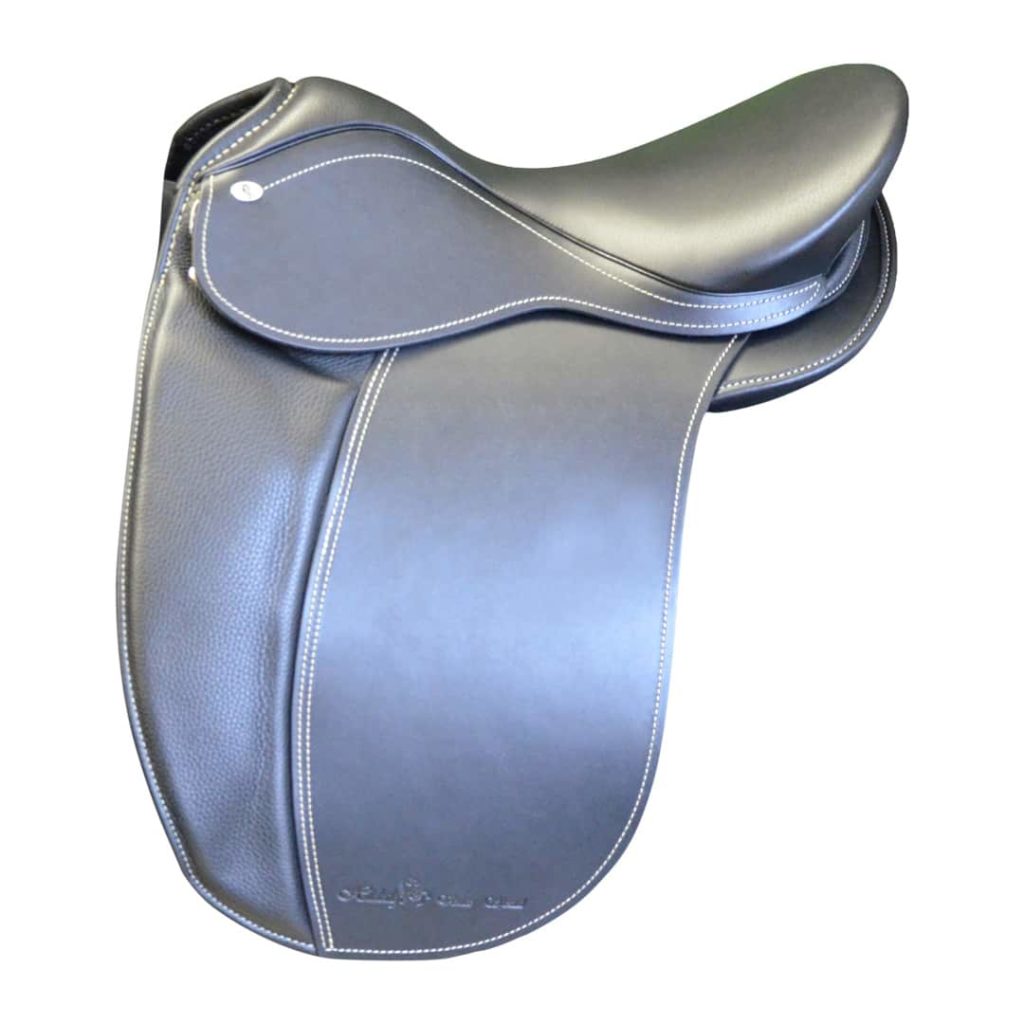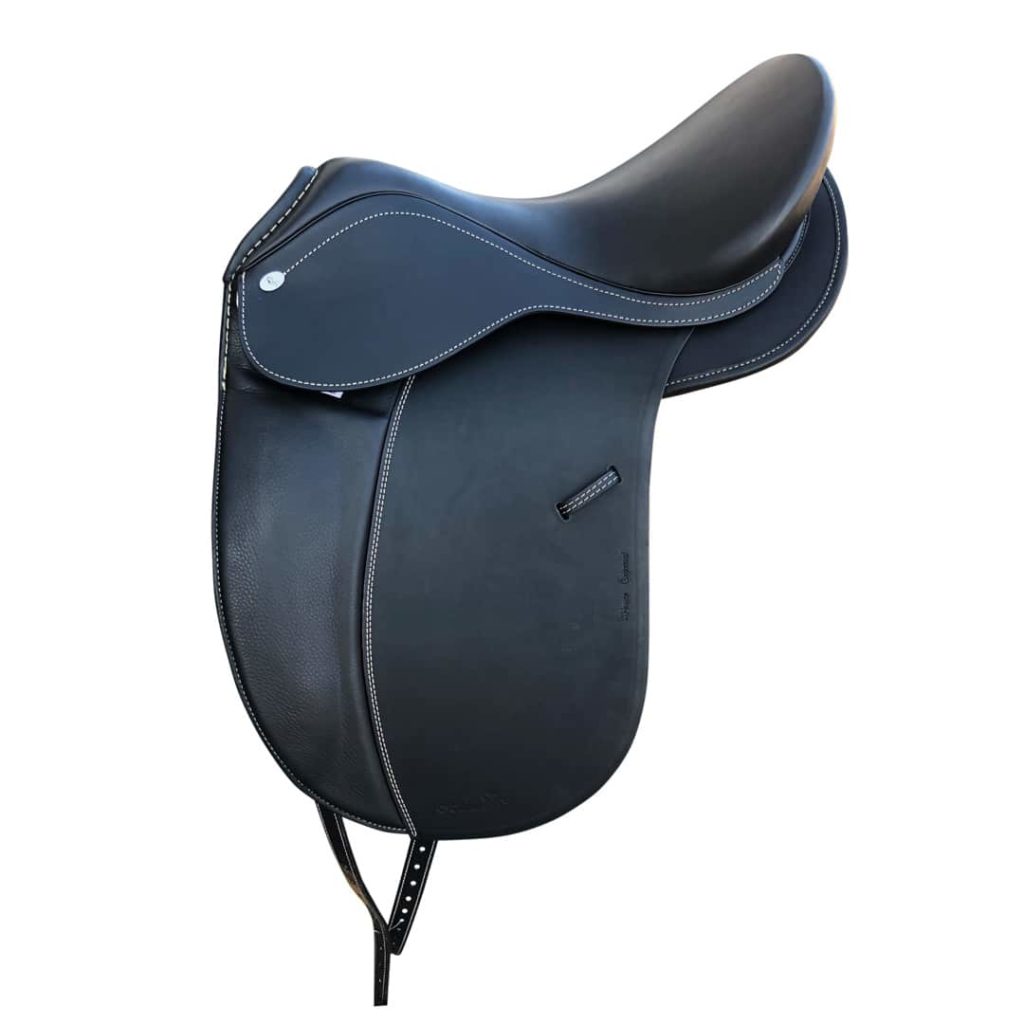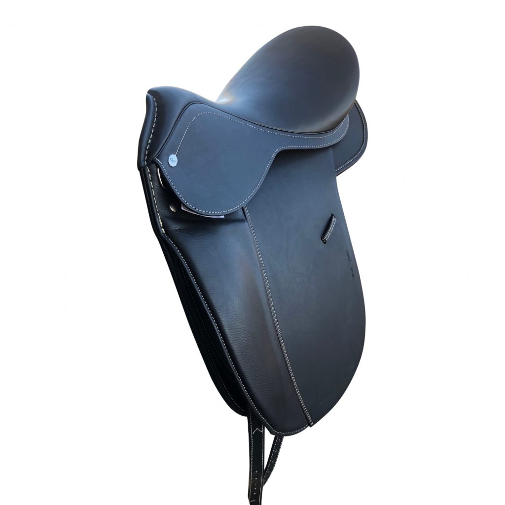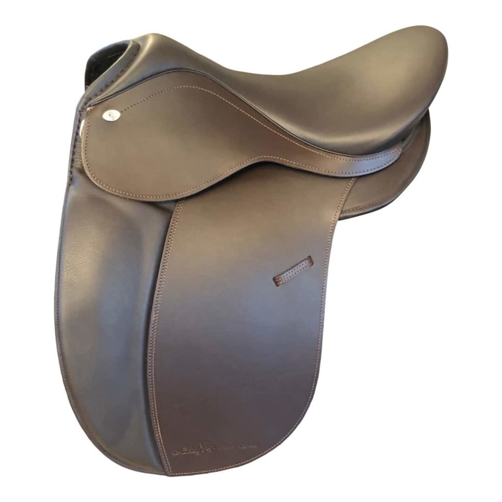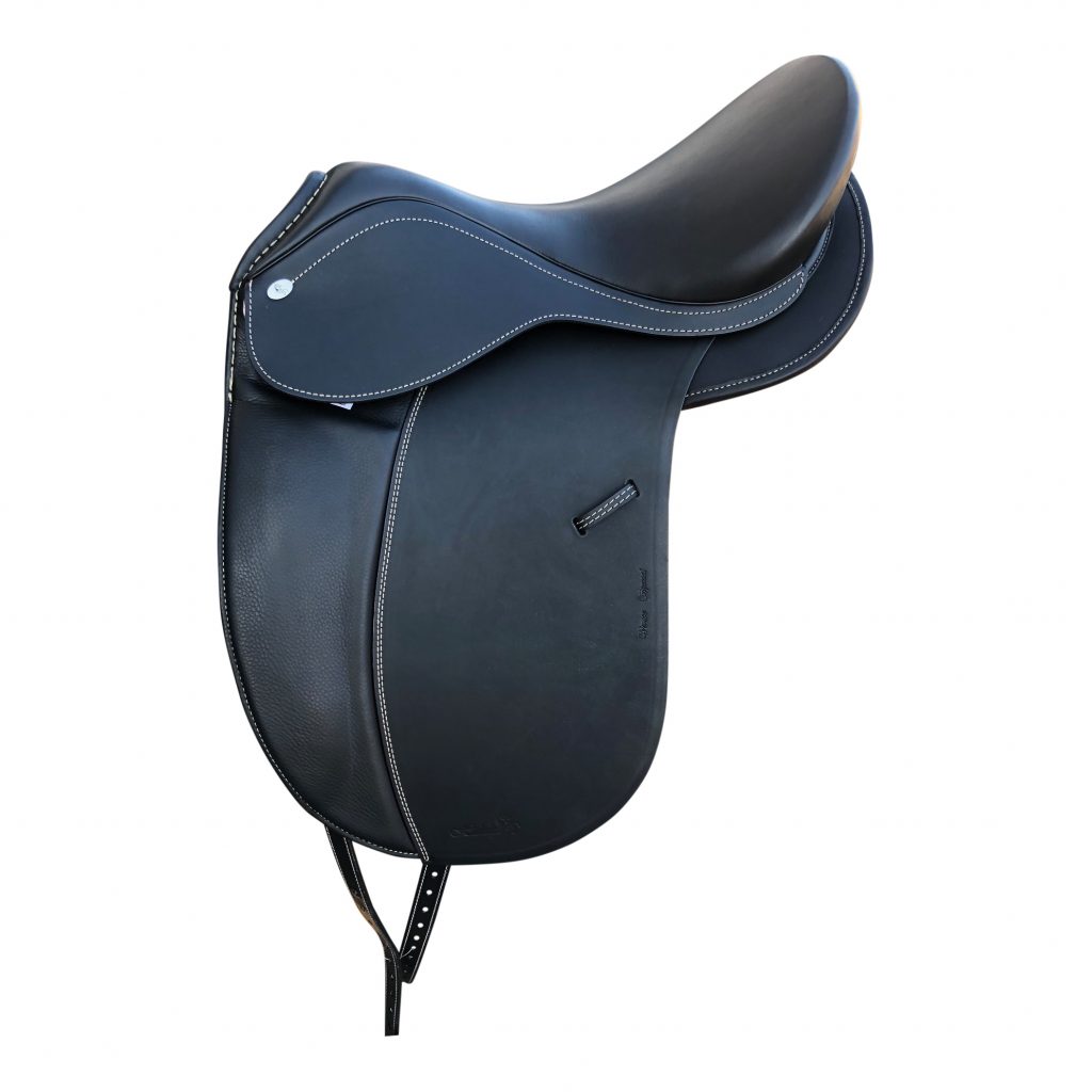 A very classy, comfortable saddle with preformed kneepatches and detachable panels and knee blocks with 11" seat at widest part.